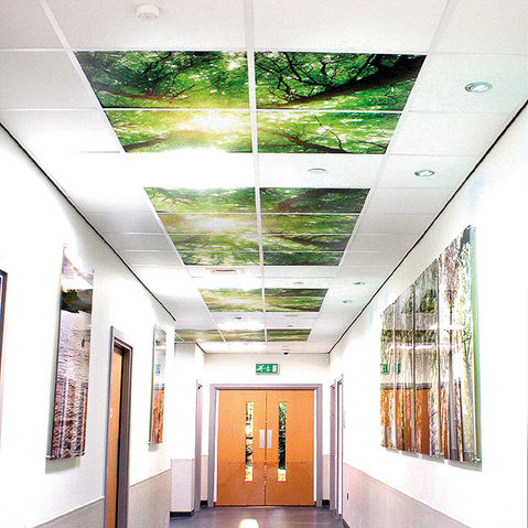 Our Ceiling Graphics are produced to exact specifications using high resolution imagery to create immersive spaces that inspire wonder. With this product you can turn your corridor into a forest, replicate a skylight or even look into space!